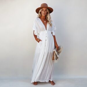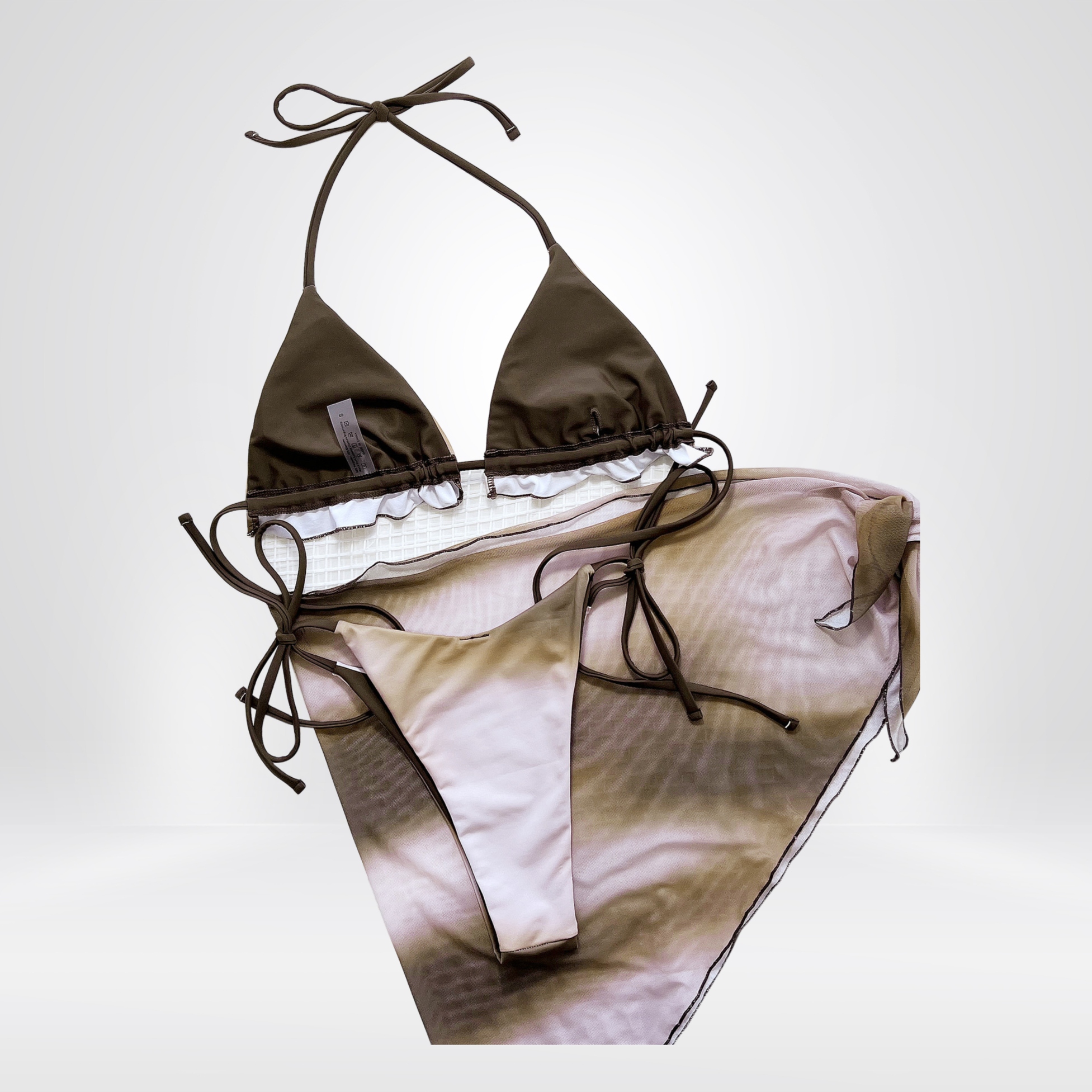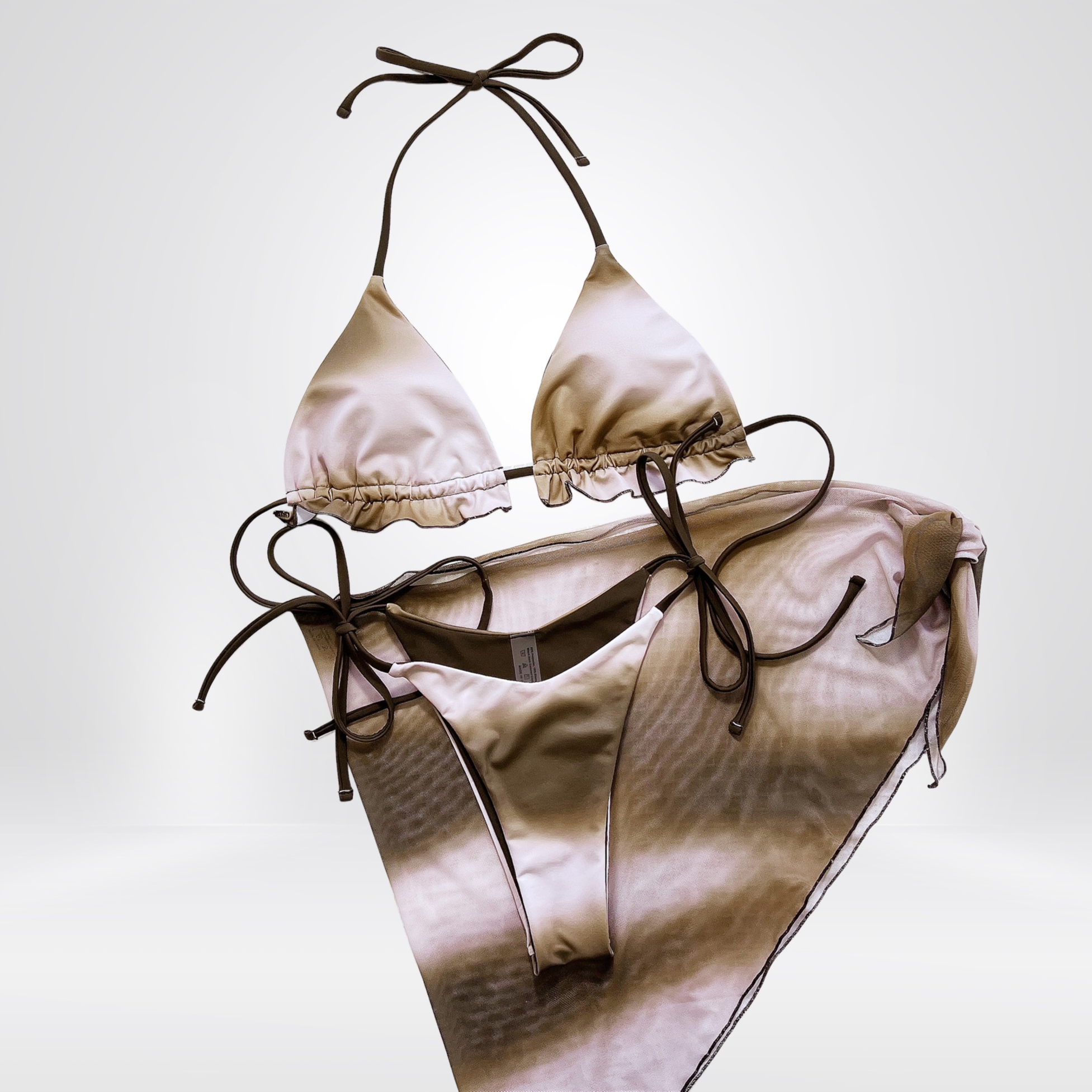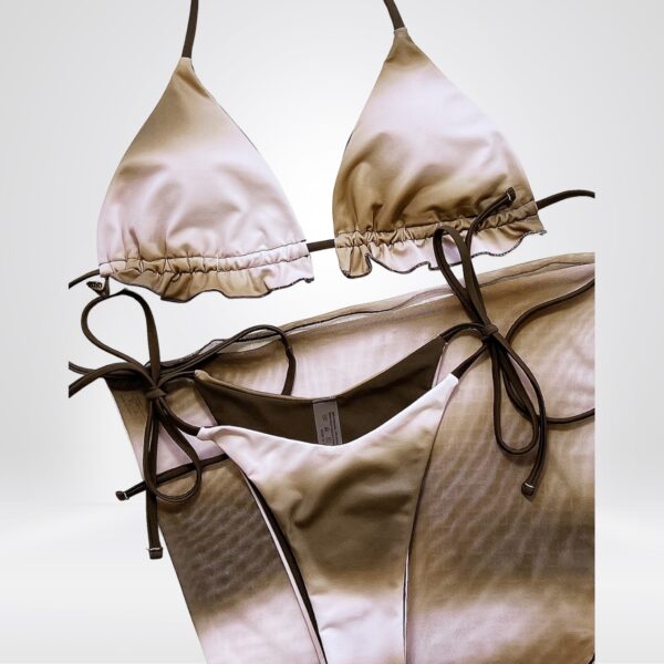 Бікіні на зав’язках з принтом тай-дай та напівпрозорою накидкою для пляжу 135-118