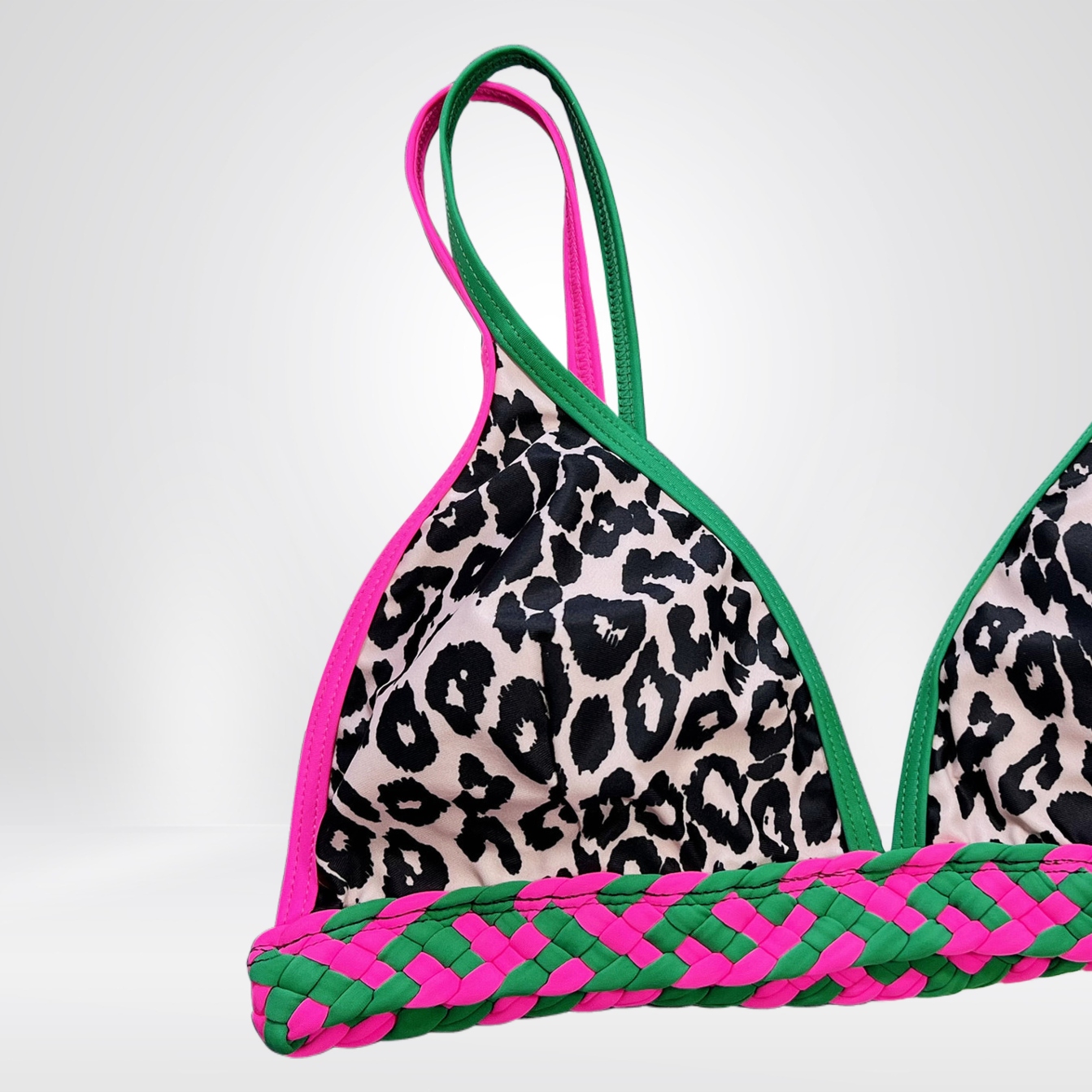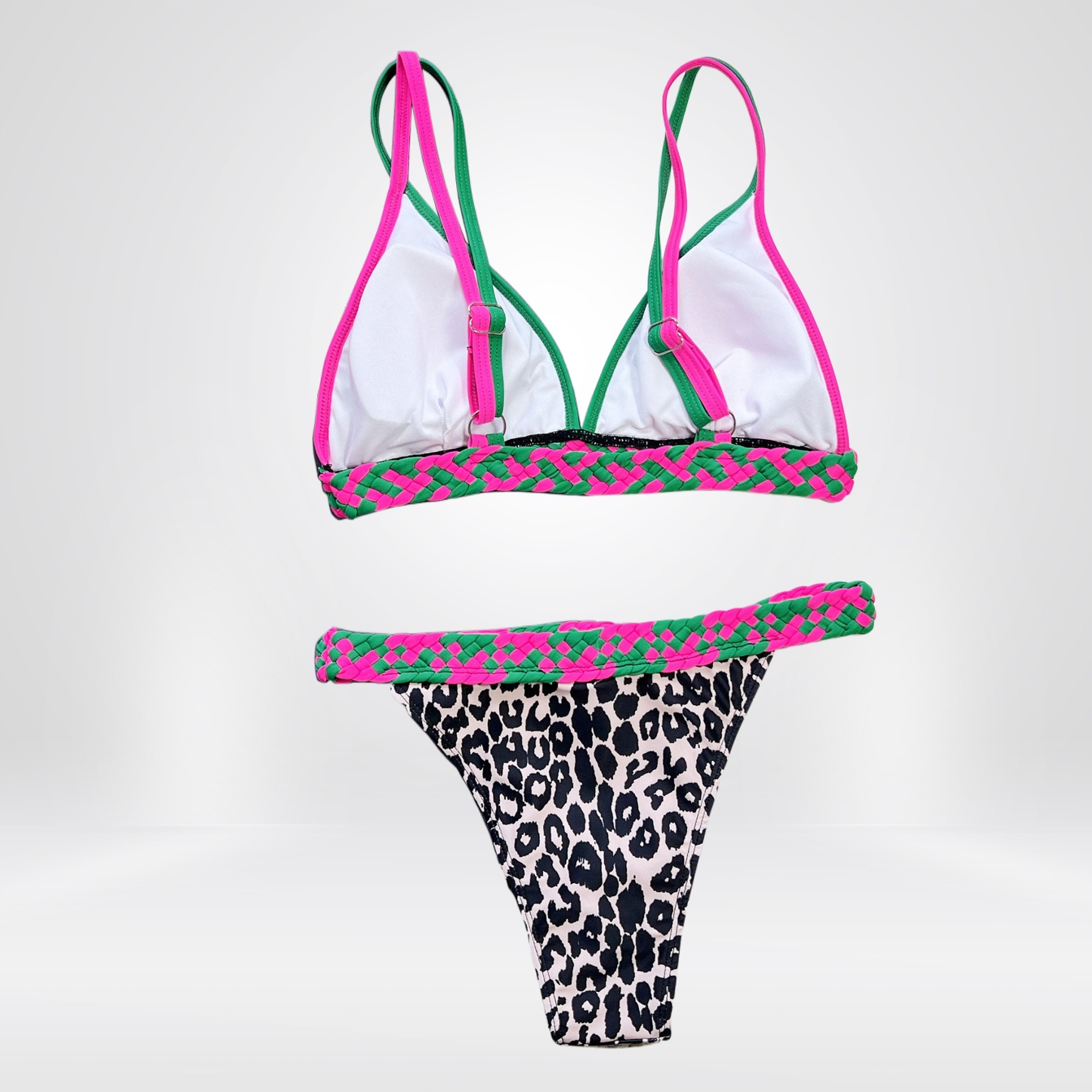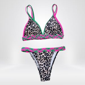 Рожевий леопардовий купальник бікіні з контрастною окантовкою 135-109