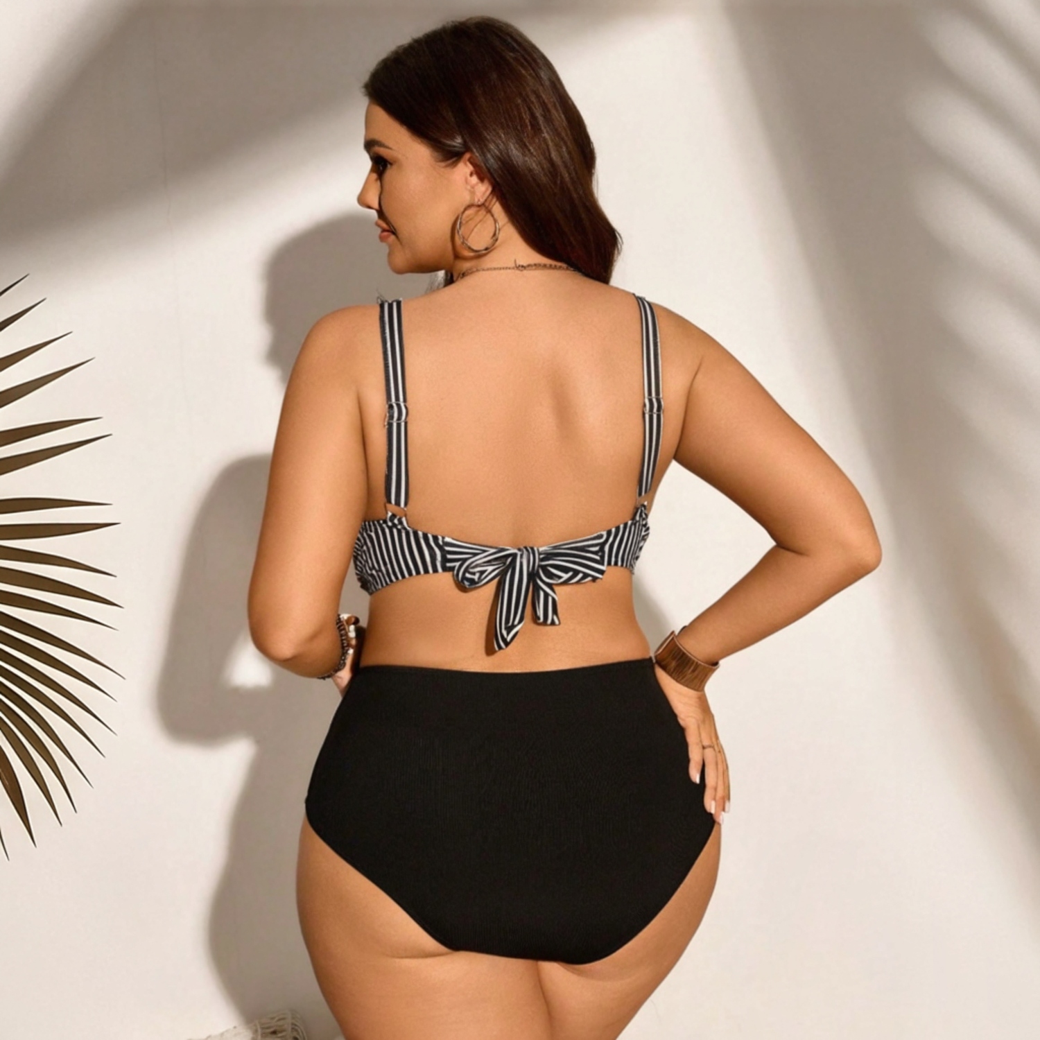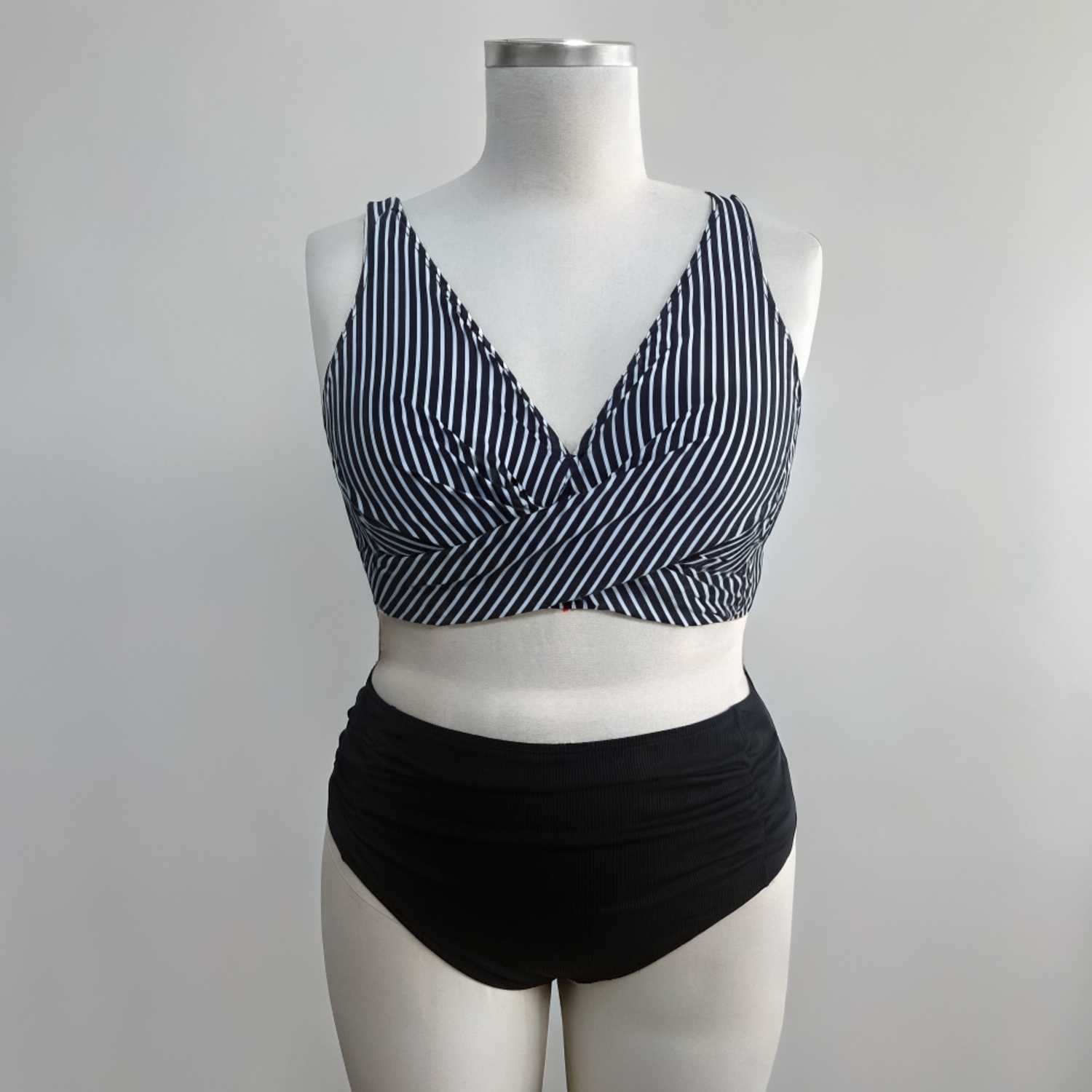 Роздільний купальник Plus Size зі смугастим топом 433-01