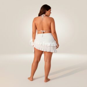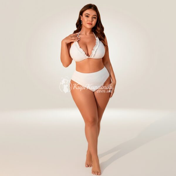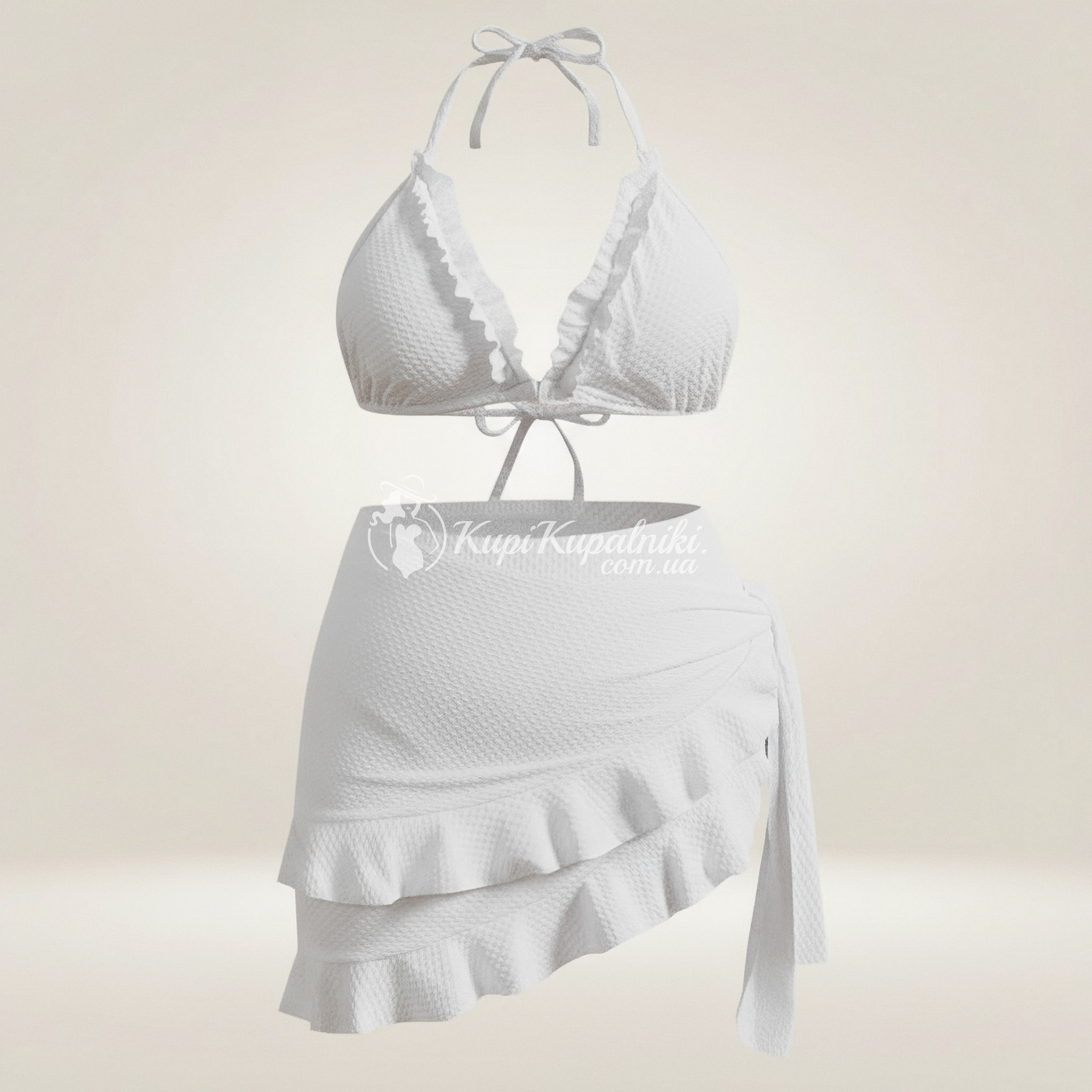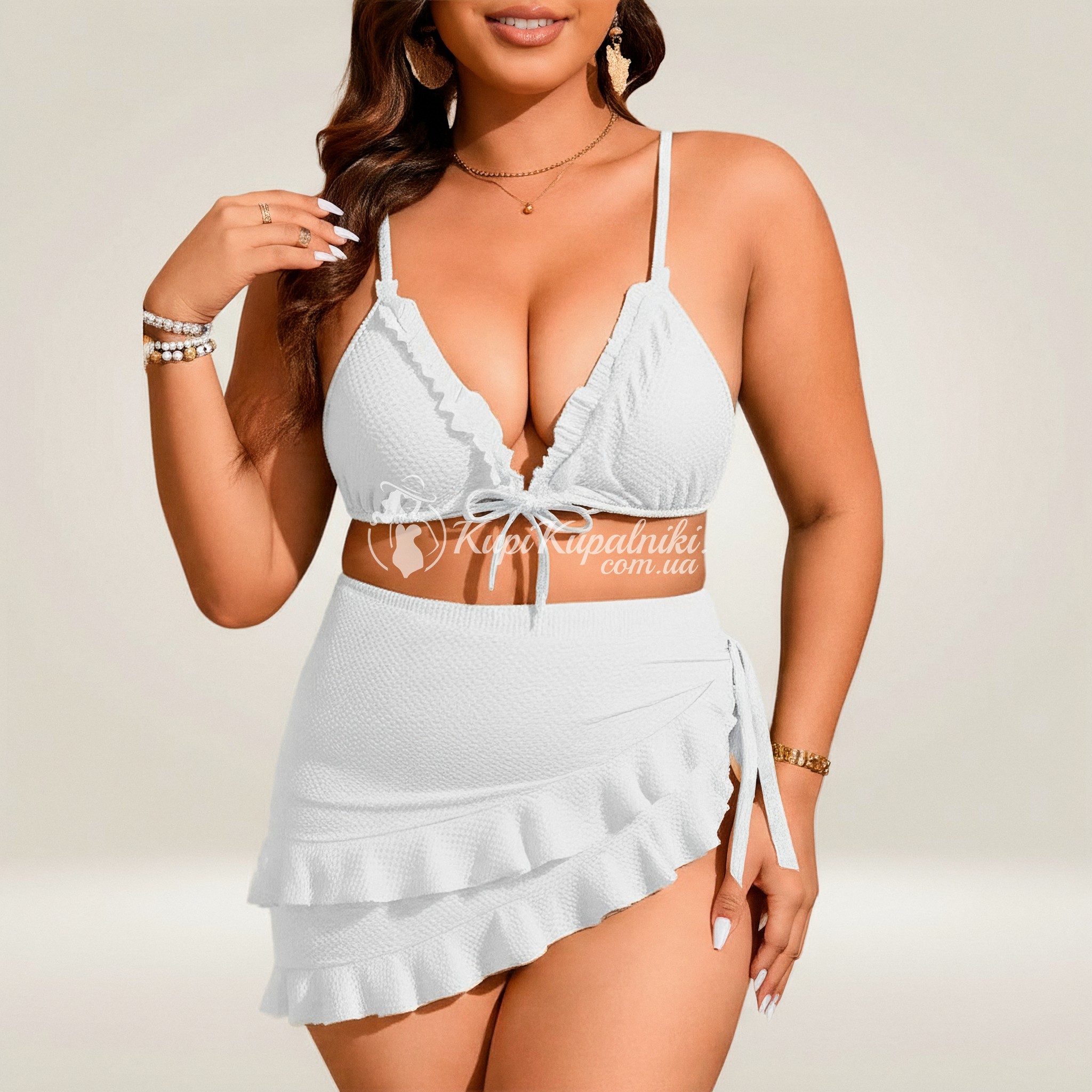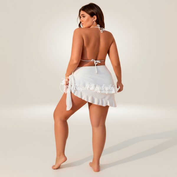 Білий бікіні Plus Size з воланами та парео-спідницею, висока талія 433-03-1